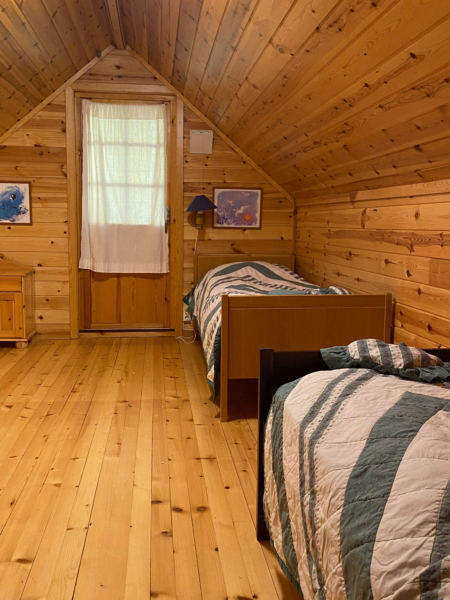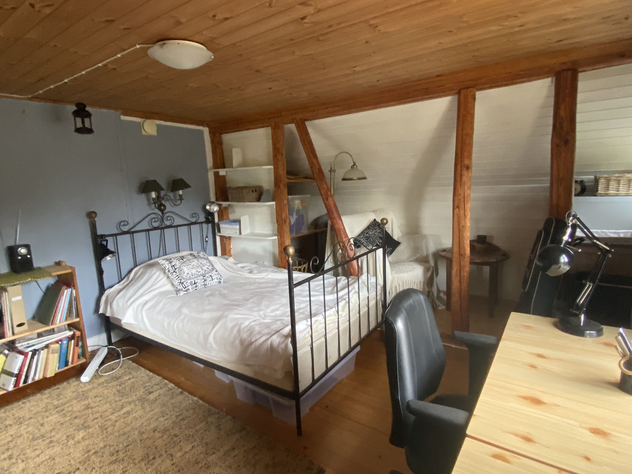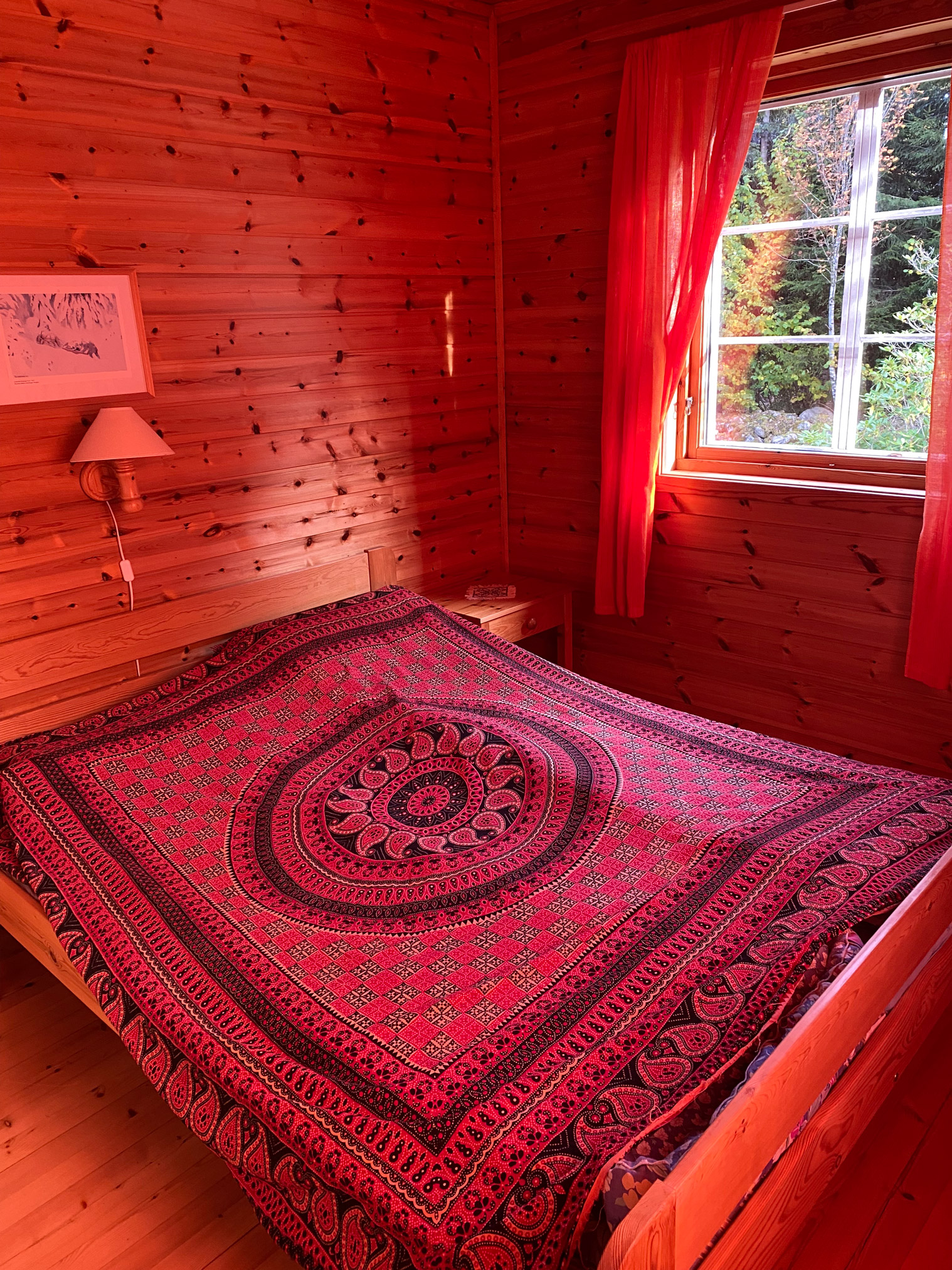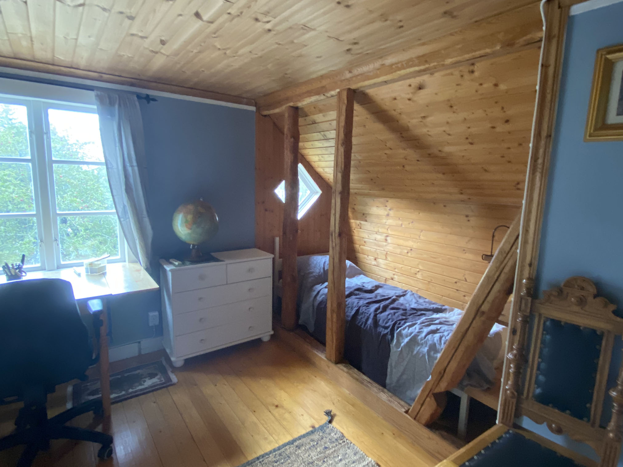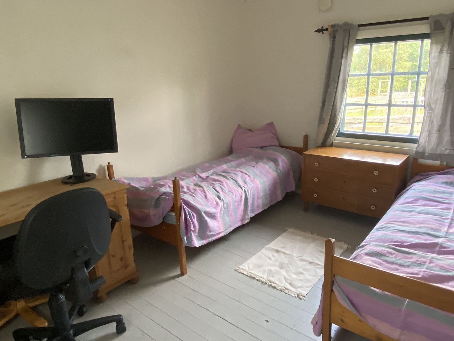 Stellans rum (uppkallat efter en av våra återkommande gäster) har ett skrivbord och två enkelsängar, varav den ena nästan rymmer två personer (120 cm bred).