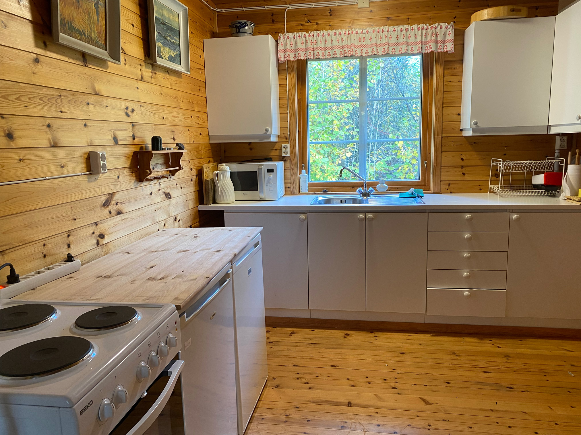 Våra kök är utrustade med vanliga köksredskap (grytor, pannor, tallrikar, koppar osv.), men du behöver ta med egen mat och planera din egen matlagning.