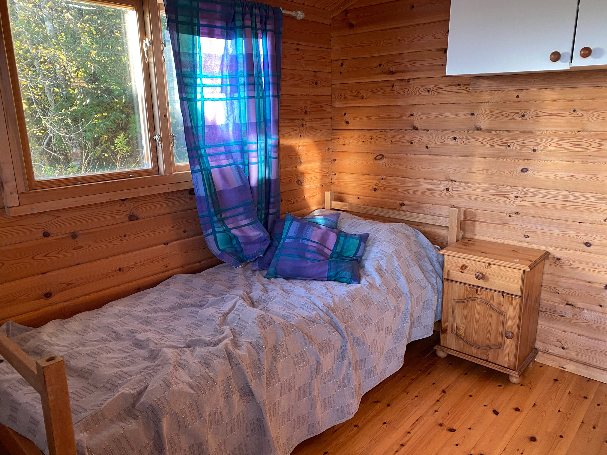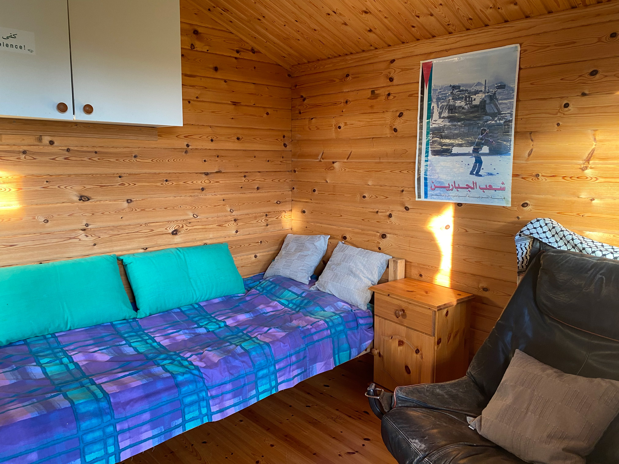 Om du fortsätter 50 meter över gräsmattan, hittar du Palestina-stugan, som har två enkelsängar och ett skrivbord.